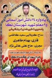 به گزارش پایگاه خبری تحلیلی پیک نکا، به نقل از دفاع پرس؛ یادواره ۷۴ دانش آموز آسمانی و ۹ معلم شهید شهرستان نکا با محوریت شهید امنیت «رضا شیخی» فردا سه شنبه ۲۰ آبان همراه با نماز مغرب و عشاء در حرم شهدای گمنام شهرستان برگزار خواهد شد.